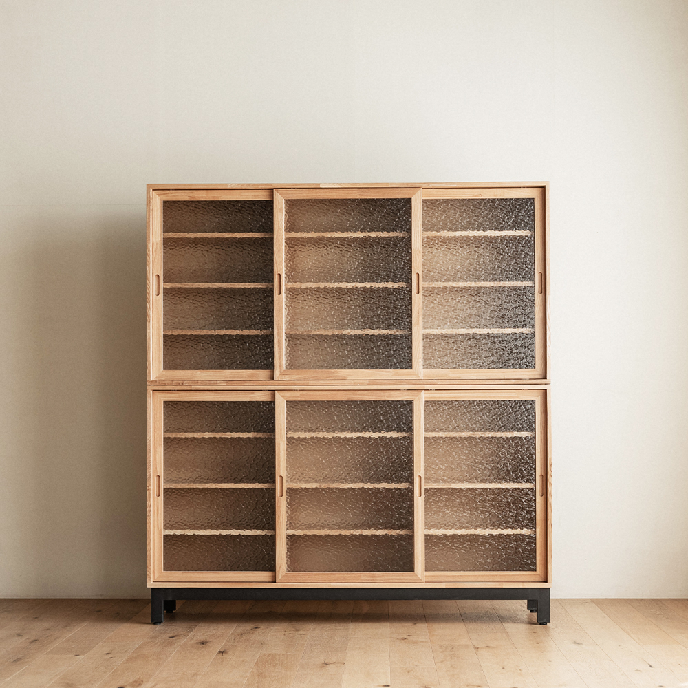 유메 원목 유리 수납장 세트 1600