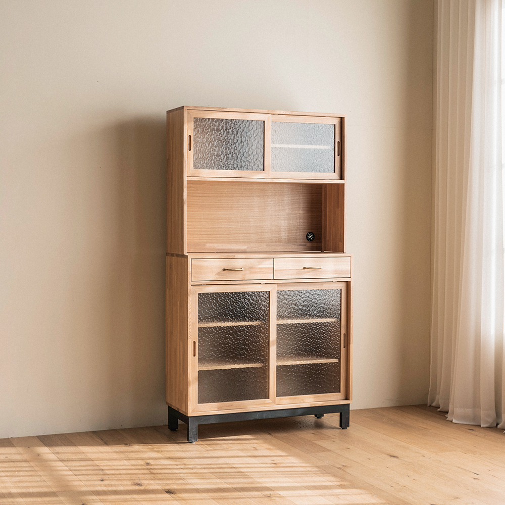 유메 원목 유리 팬트리 서랍 수납장 세트 1000